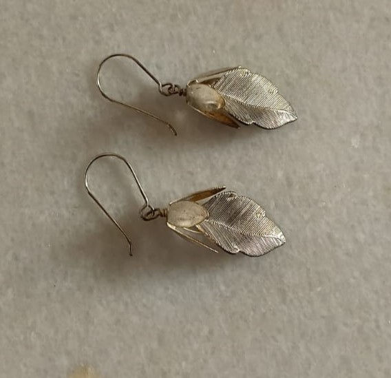 This silver-coloured dangler has a leaf dangling from a flower - simple wear to office design!